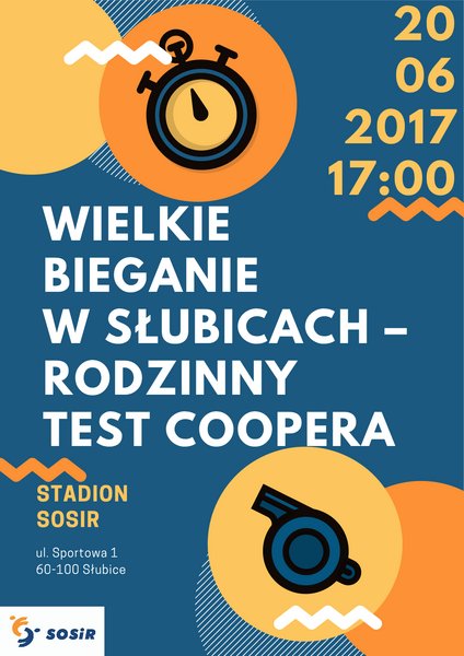 Główni organizatorzy: SOSIR Słubice, LUBUSZ Słubice i Słubicka Akademia Biegowa postanowili wyjść naprzeciw zapotrzebowaniu słubiczan proponując kolejną imprezę rekreacyjno – biegową. Na rodzinny test Coopera zapraszamy aktywne rodziny a także pojedyncze biegające osoby.