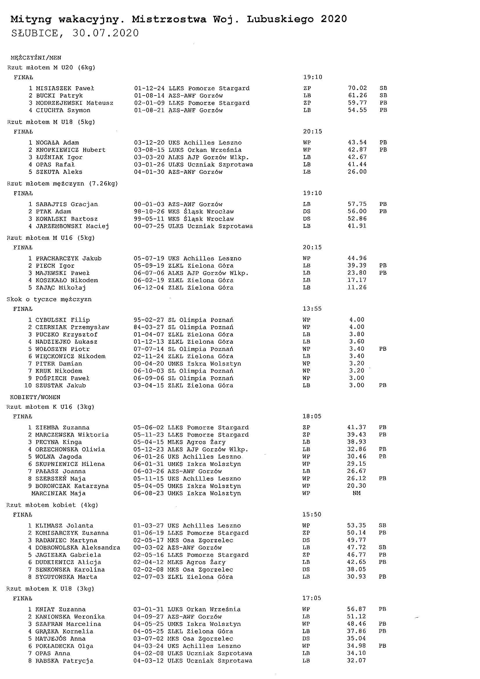 Komunikat MITYNG WAKACYJNY. MISTRZOSTWA WOJ. LUBUSKIEGO 2020