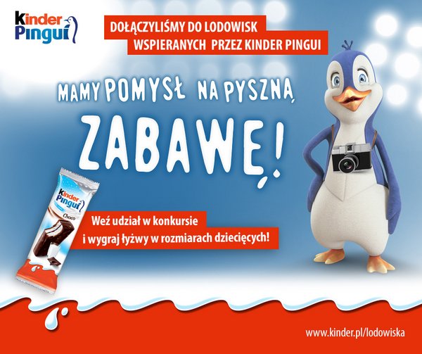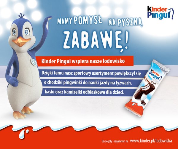Miło nam poinformować, że nasze lodowisko nawiązało wspólpracę z firmą Kinder Pingui. Dzięki temu możemy również zaproponować naukę jazdy na łyżwach przy pomocy Pingwinów Pomocników, a także innego sprzętu do bezpiecznej
