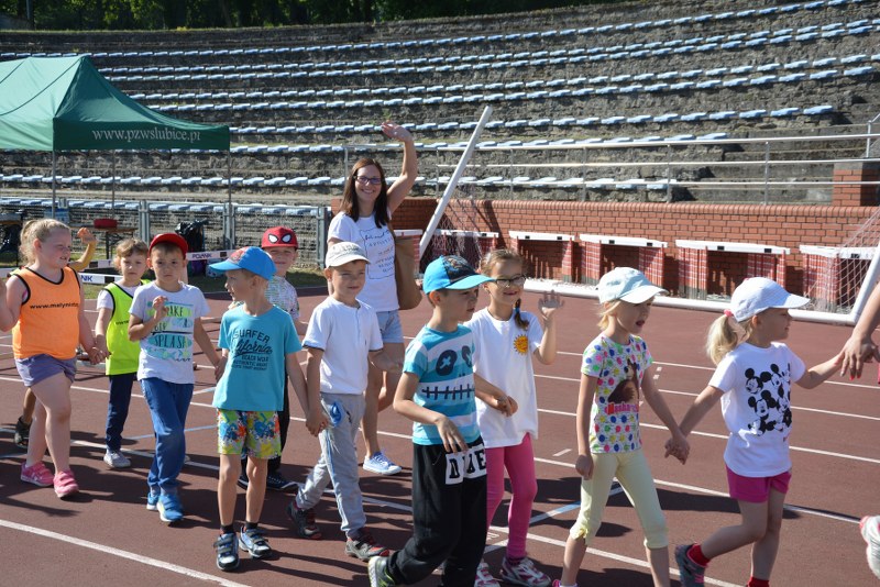 Przy pięknej słonecznej pogodzie dzieci słubickich przedszkoli rywalizowały w podstawowych konkurencjach lekkoatletycznych z okazji Dnia Dziecka 2017.