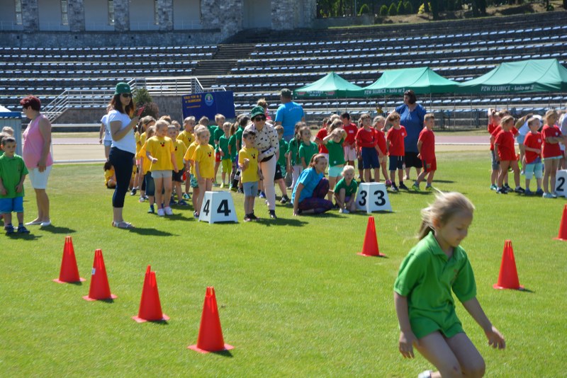 Po uroczystym otwarciu, następnie profesjonalnej rozgrzewce przeprowadzonej przez Piotra Kiedrowicza – Słubicka Akademia Biegowa, dzieci miały do rozegrania dwie konkurencje indywidualne: bieg na dystansie 40m i konkurs skoku w dal ze strefy oraz konkurencję zespołową: sztafetowy tor przeszkód, której drużyna liczyła po 20 osób / osobostartów.