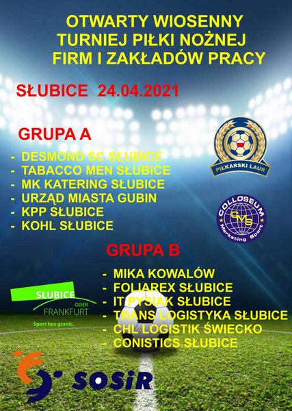 Wiosennego otwartego turnieju piłkarskiego zakładów pracy i firm oraz do